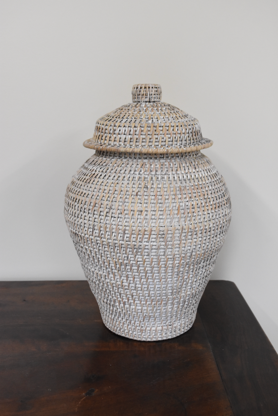 White Washed Wicker Ginger Jar