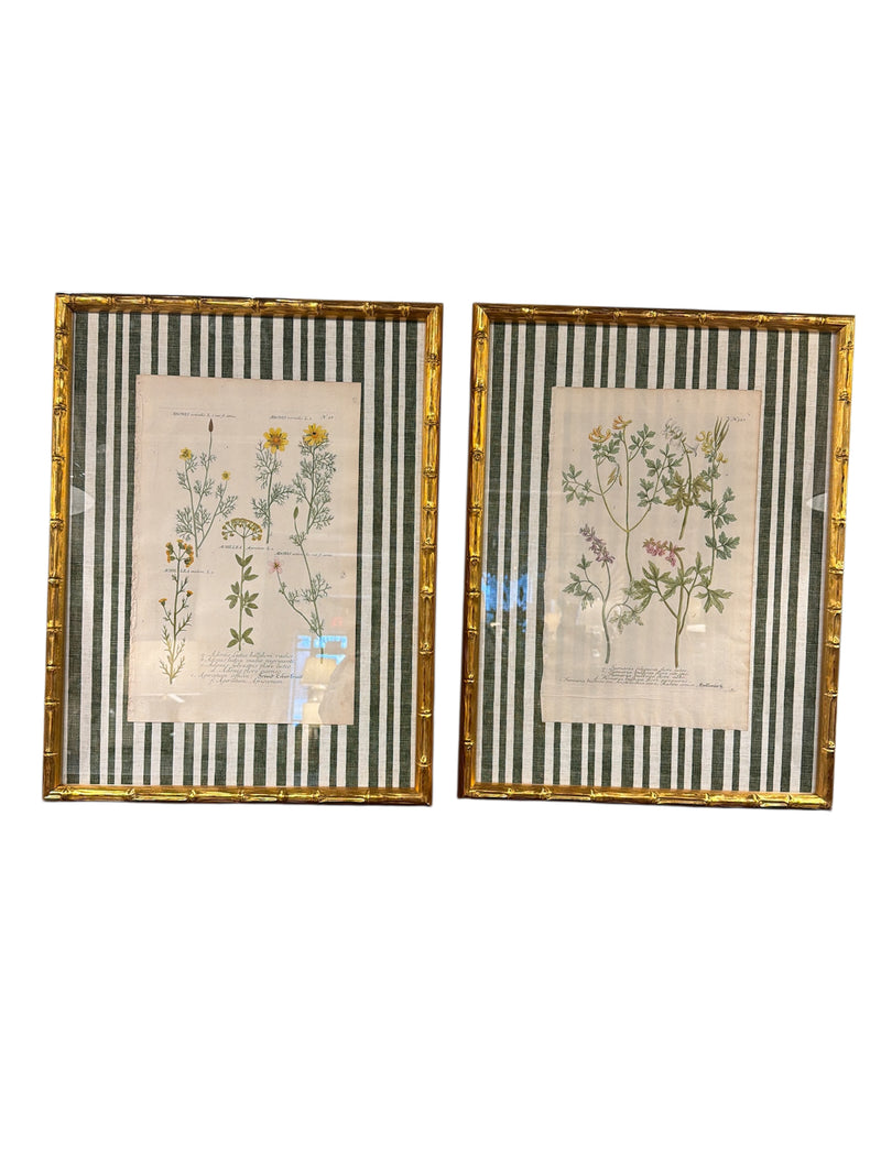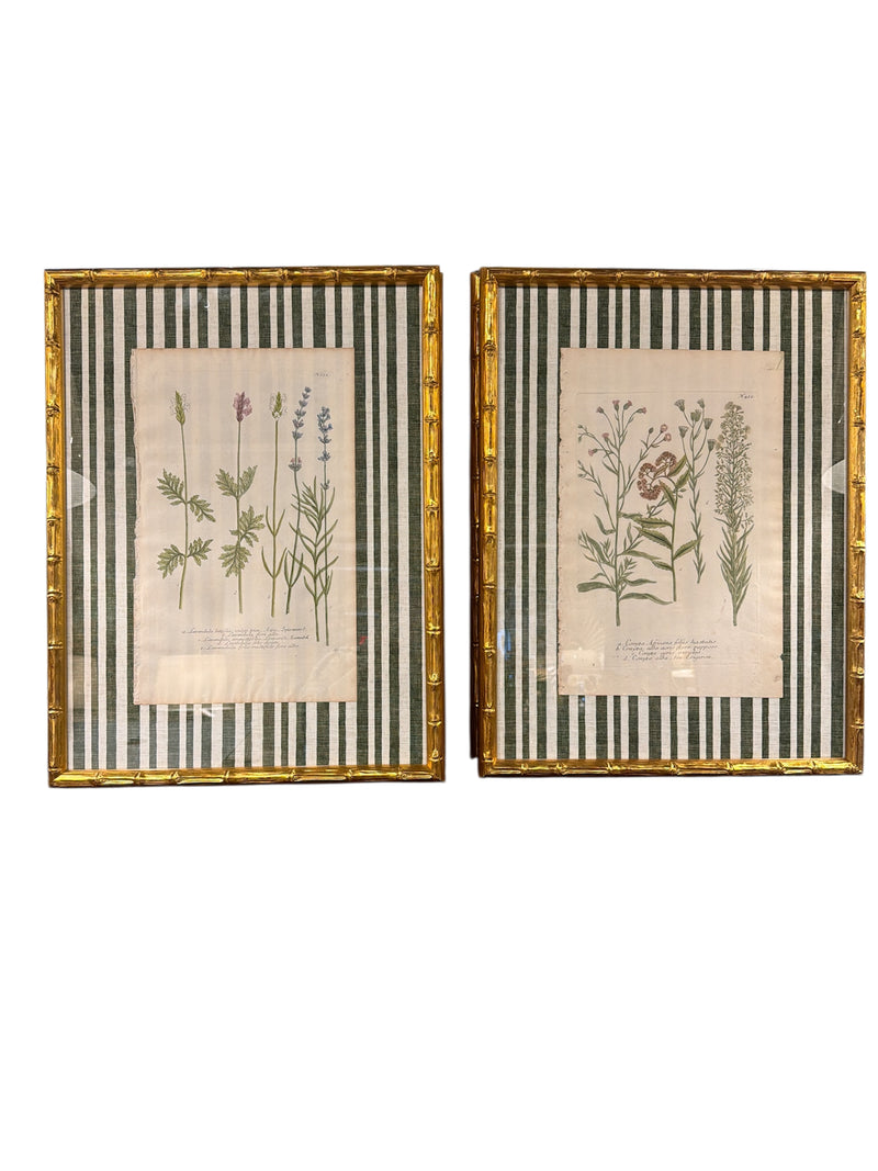 Pair of Brown Striped Bamboo Framed Botanicals