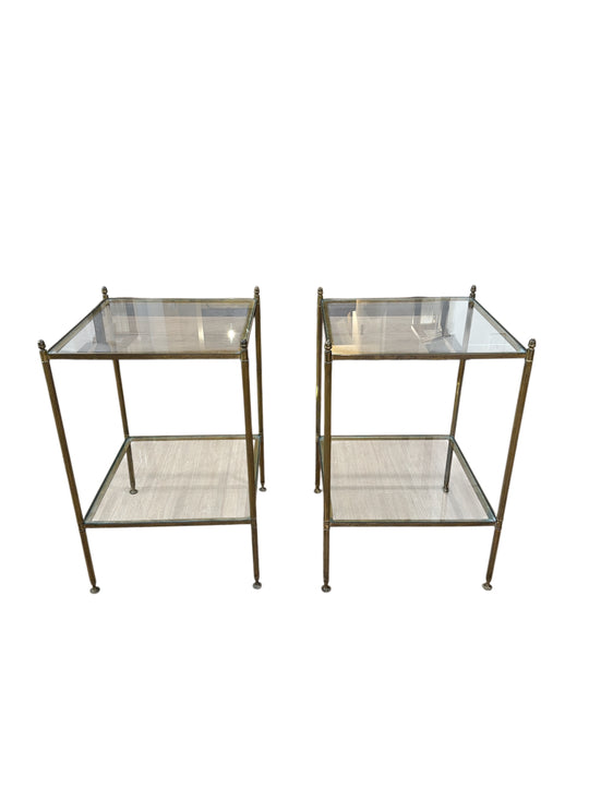 Pair of Brass & Glass Two-Tier Side Tables