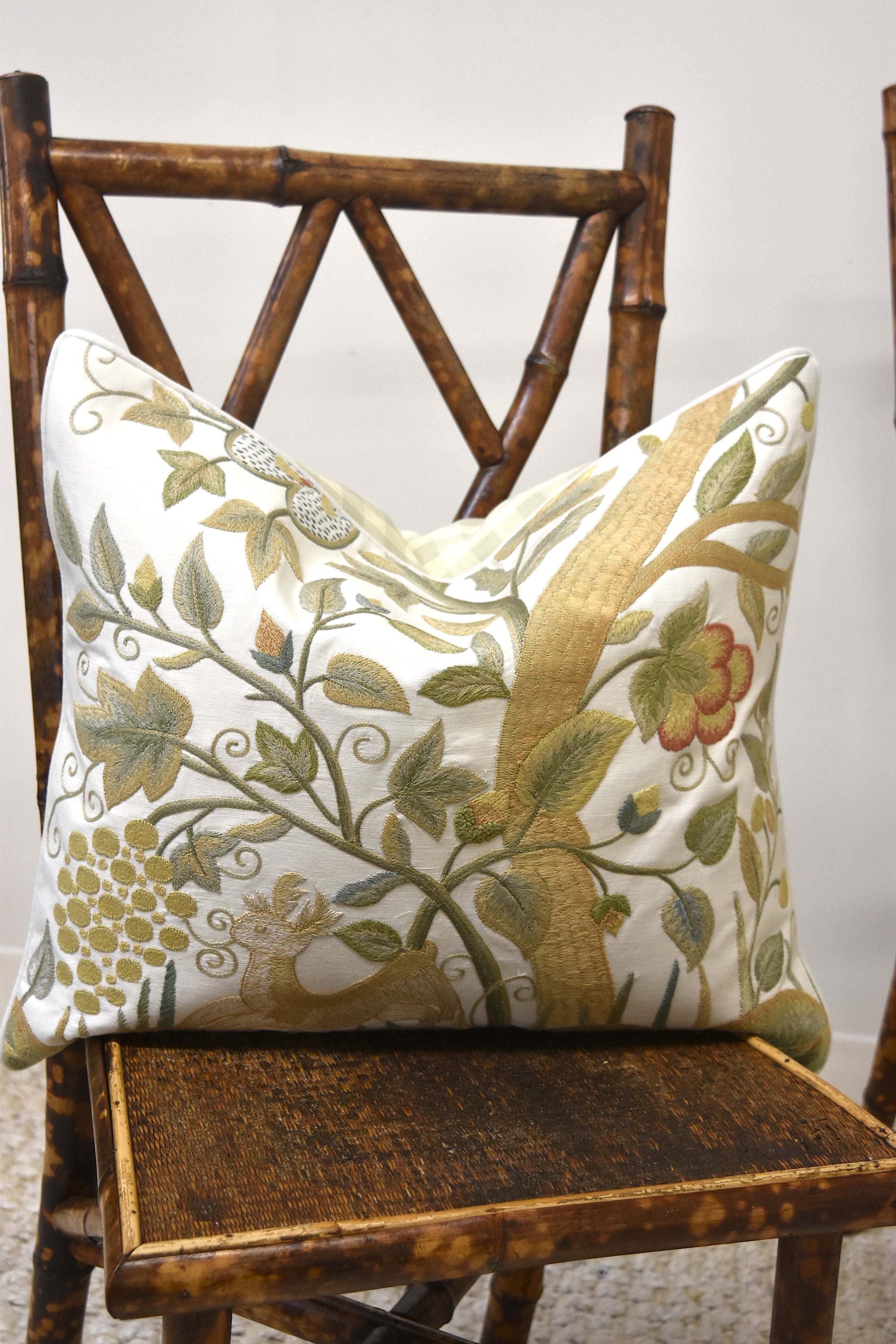 Inspired by traditional motifs, this embroidered lumbar pillow features a beautifully detailed Tree of Life design in soft, faded moss tones. The intricate stitching adds rich texture and depth, while the muted palette offers a relaxed, timeless feel. Perfect for layering on a sofa, chair, or bed, it brings a collected, artisan touch to any setting. Pillow includes a plush down insert.