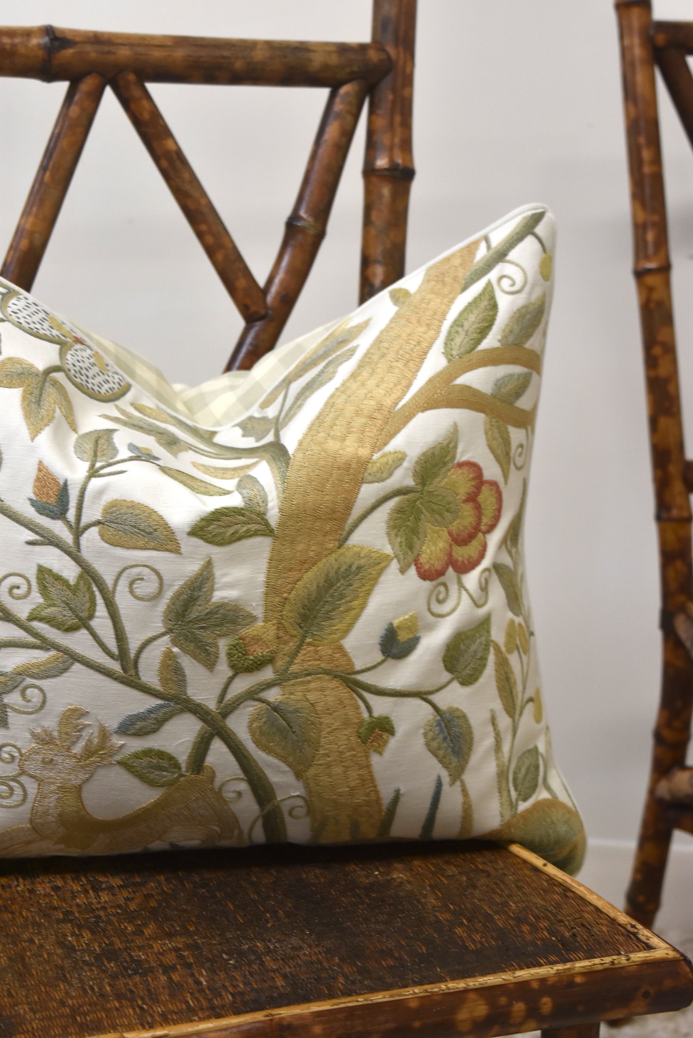 Embroidered Faded Moss Tree Of Life Lumbar Pillow